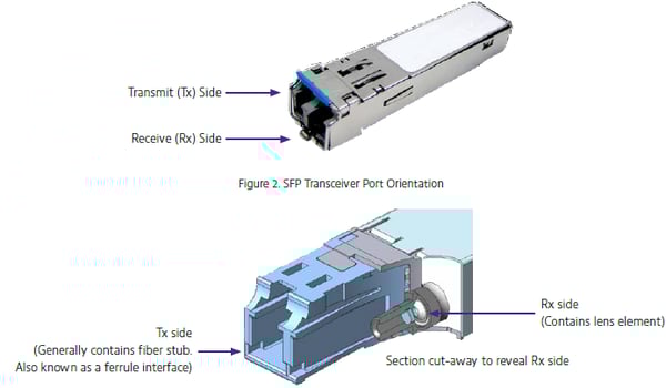 Fiber optic transceivers are highly variable in design and type: e.g. SFP, XFP, XENPAK, GBIC etc. Both the SFP and XFP have an LC connector interface; XENPAK and GBIC have an SC interface. QSFP transceivers typically have an MPO or LC interface. The key to inspecting transceivers is to understand that each port will either contain: