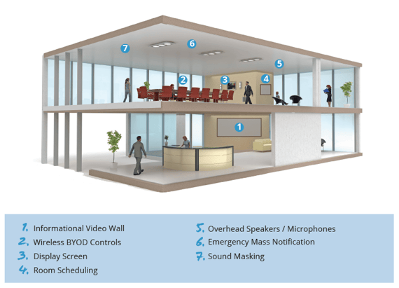 | 1. Informational Video Wall | 5. Overhead Speakers and Microphones |